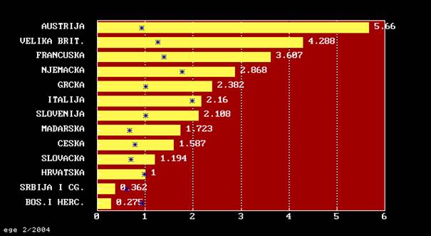 zemalja u odnosu na Hrvatsku (indeks =1 stupci